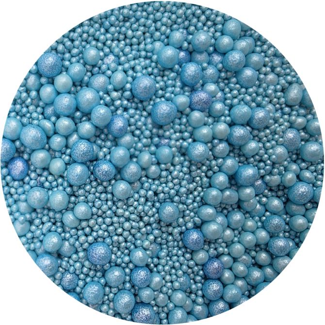 Jemně modrá smíchaná s lesklou modrou a stříbrnou.