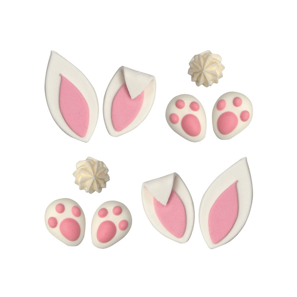 Zdobení na dort ouška a tlapičky připravené k přímému použití. Zdobení je vyráběno ručně, s obsahem přírodních extrakčních barviv. Ideální pro zdobení dortů, košíčků a dalších dezertů. Tyto dekorace jsou již hotové, není potřeba je dále upravovat. Rozměry: 1,5 – 2,5 – 3,5 cm, v balení 10 ks.