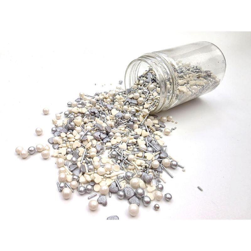 Originální cukrová posypka Ranní rosa je perfektním doplňkem ke všem druhům svátečního pečení. Ať už pečete dorty, muffiny, perníčky nebo jiné sladkosti, tato poleva jim dodá sváteční nádech. Posypka je směsí cukrové posypky ve tvaru bílých a stříbrných srdíček, tyčinek a perliček. Ranní rosa je směsicí stříbrné a bílé barvy. Každá z těchto barev se bude dokonale hodit k vašim svátečním i narozeninovým dekoracím a vaše pečivo bude vypadat ještě působivěji. Balení obsahuje až 80 gramů tohoto unikátního posypu. To stačí k ozdobení mnoha pečiva a vytvoření jedinečné sváteční atmosféry na vašem stole. Díky tomuto produktu si budete moci vychutnat nejen chuť, ale i estetiku vašich upečených dobrot. Posypky se snadno používají – stačí je posypat na upečený dort nebo muffin a obdivovat efekt.