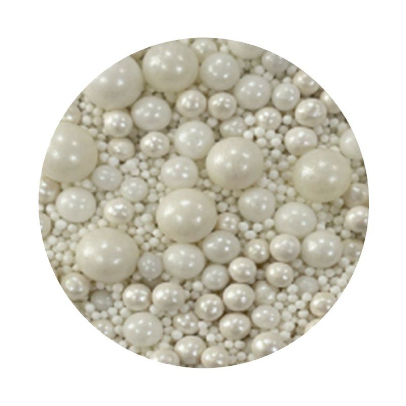 Sypání má podobu různě velkých perliček v bílé barvě. Jedná se o sladký posyp z řady unikátních produktů od ILOVECAKES. Nemění chuť zdobených výrobků, je vyroben z přírodních barviv a má chuť cukrové pasty. Jedná se o velmi univerzální zdobení, ideální na dekorování cupcaků, sušenek, perníčků, muffinů, dortů, zákusků, pečiva, dortů, pralinek, lanýžů, čokolády, zmrzliny a mnoha dalších sladkých výrobků, zejména těch s krémy a polevou. Je vhodný pro každou příležitost: svatba, karneval, narozeniny, Den matek a mnoho dalších. Baleno v praktické šroubovací dóze. Pokud zdobení nasypete na vláčný krém, vlhkost z něj může posypek změkčit. Ale pozor, pokud bude zdobení na vlhkém krému delší dobu, může se z posypku uvolnit i barvivo a to na povrch krému. Pokud chcete, aby větší části dekorace drželi například na potahovém dortu, můžete tento druh zdobení k dortům lepit polotuhou čokoládou, nebo glazurou na perníčky. s posypky pracujte nejlépe nad miskou, či plechem s okrajem.