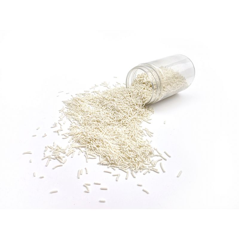 Cukrové tyčinky bílé dělají dorty, sušenky, cupcaky, perníčky, dortíky a zmrzlinu ze sušenek velmi elegantní. Dodávají dezertům dokonalý vzhled. Hodí se na každou příležitost. Od této chvíle je zdobení cupcaků a dortů ještě jednodušší! Používají je také profesionální cukráři k dozdobení dortů a jiného pečiva. Máme je v různých barvách, velikostech a tvarech. Díky tomu je lze snadno sladit s dalšími detaily na pečivu nebo dezertech. Pokud zdobení nasypete na vláčný krém, vlhkost z něj může posypek změkčit. Ale pozor, pokud bude zdobení na vlhkém krému delší dobu, může se z posypku uvolnit i barvivo a to na povrch krému. Pokud chcete, aby větší části dekorace drželi například na potahovém dortu, můžete tento druh zdobení k dortům lepit polotuhou čokoládou, nebo glazurou na perníčky. s posypky pracujte nejlépe nad miskou, či plechem s okrajem. Pokud zdobení nasypete na vláčný krém, vlhkost z něj může posypek změkčit. Ale pozor, pokud bude zdobení na vlhkém krému delší dobu, může se z posypku uvolnit i barvivo a to na povrch krému. Pokud chcete, aby větší části dekorace drželi například na potahovém dortu, můžete tento druh zdobení k dortům lepit polotuhou čokoládou, nebo glazurou na perníčky. s posypky pracujte nejlépe nad miskou, či plechem s okrajem.