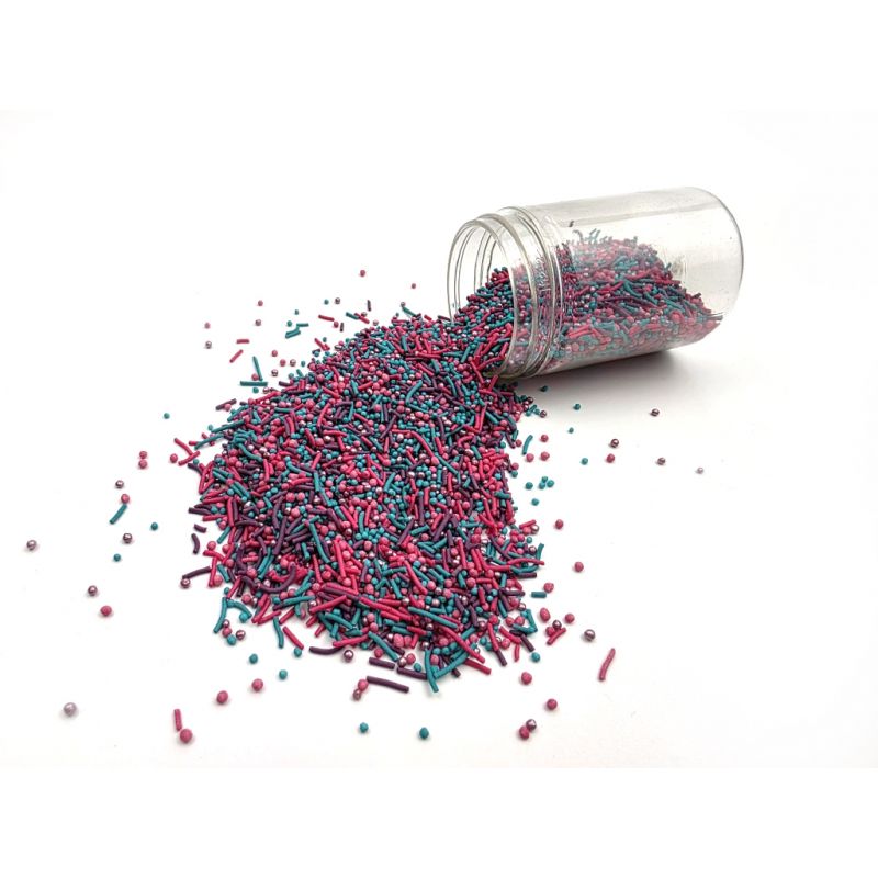Mix cukrových tyčinek a barevného sladkého máčku. Tato jedinečná dekorace zaujme svou barevnou kombinací a perfektním vzhledem. Tyto cukrové prvky vypadají úžasně na dortech, cupcakes, řezech dortů, sušenkách a dalších dezertech – ideální na Valentýna, zásnuby, svatby a narozeniny. Díky svému tvaru a zářivým barvám tato srdíčka krásně kontrastují s lehkými krémy, fondánem a čokoládovou polevou. Snadno se nanášejí – stačí je lehce posypat povrch pečiva nebo je uspořádat do vámi zvoleného vzoru. Jsou ideální jak pro domácí vaření, tak pro profesionální pekárny."