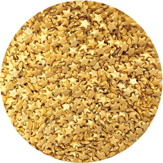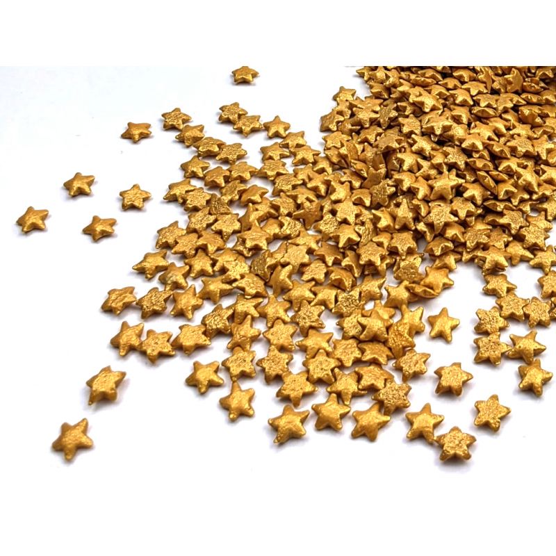 Cukrové posypky ve tvaru zlatých hvězdiček jsou ozdobným doplňkem pečiva a dezertů, které navodí kouzlo nejen vánoční atmosféry. Díky svému jedinečnému lesklému vzhledu a tvaru hvězdy je ideální pro zdobení dortů, muffinů, perníků a zmrzliny. Barevné, lesklé prvky přitahují pozornost a dodávají pečivu elegantní vzhled. Ideální k dekoraci při různých příležitostech, zejména v období svátků, jako jsou Vánoce nebo Silvestr. Dostupné v praktickém balení, které usnadňuje skladování a dávkování. Všestrannost posypů znamená, že je můžete použít pro různé příležitosti.Dodejte svému pečení jedinečný nádech s našimi jedlými cukrovými motýlky v krásných pastelových barvách. Pokud zdobení nasypete na vláčný krém, vlhkost z něj může posypek změkčit. Ale pozor, pokud bude zdobení na vlhkém krému delší dobu, může se z posypku uvolnit i barvivo a to na povrch krému. Pokud chcete, aby větší části dekorace drželi například na potahovém dortu, můžete tento druh zdobení k dortům lepit polotuhou čokoládou, nebo glazurou na perníčky. s posypky pracujte nejlépe nad miskou, či plechem s okrajem.