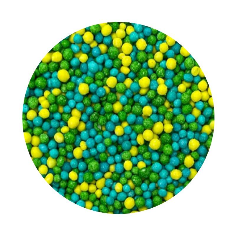 Modro - zeleno-žlutý cukrový máček je perfektní řešení, které dodá vašemu pečení charakter. Tato lehká, sladká dekorace je vhodná nejen pro zatraktivnění vašich dezertů, ale dodá jim i punc elegance. U nás najdete široký výběr cukrového máku, který potěší každého mlsouna. Cukrový máček je jemná, barevná posypka s univerzálním použitím. Můžete jej použít na zdobení dortů, cupcaků, sušenek a dokonce i zmrzliny. Makový posyp díky své struktuře dokonale přilne ke krémům a polevám a vytvoří tak efektní dekoraci bez zbytečné námahy. Pokud zdobení nasypete na vláčný krém, vlhkost z něj může posypek změkčit. Ale pozor, pokud bude zdobení na vlhkém krému delší dobu, může se z posypku uvolnit i barvivo a to na povrch krému. Pokud chcete, aby větší části dekorace drželi například na potahovém dortu, můžete tento druh zdobení k dortům lepit polotuhou čokoládou, nebo glazurou na perníčky. s posypky pracujte nejlépe nad miskou, či plechem s okrajem.