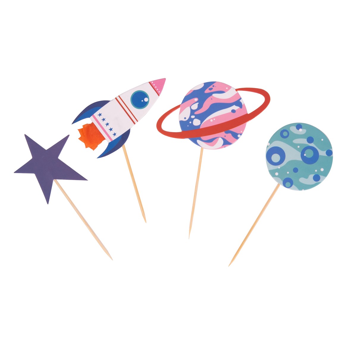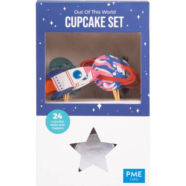 Přidejte trochu galaktické magie do svého zvláštního dne s PME Out of this World Space Cupcake Set. Ten vnese do vašich cupcaků a výtvorů speciální nádech barev, zábavy a okázalosti. Každé balení obsahuje: 24 košíčků a 24 ozdob. Vysoce kvalitní papírová pouzdra na košíčky potažená metalickou fólií, aby neprosakovala mastnota. Snadné a pohodlné použití. Ozdoby jsou již připevněny přírodními bambusovými tyčemi. Jednoduše položte na košíčky.