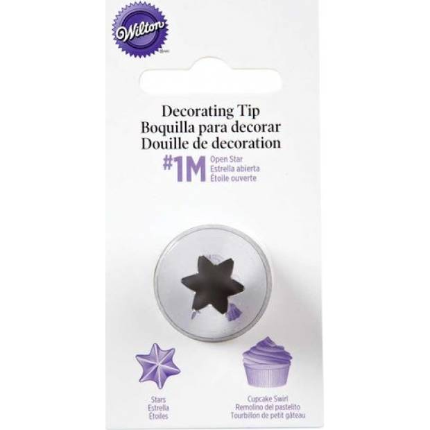 Oblíbené dekorační špička wilton 1m je vyrobena z poniklované mosazi. Je vhodná pro zdobení dortů i rolád a dalších oblíbených moučníků. Jemně řezané zoubky vytvoří do detailu propracovaný vzorek. Špička 1m wilton je vhodná pro přípravu cupcakes, muffinů. Určená pro větší spojky na zdobící sáček. Nasaďte koncovku 1m na zdobící sáček naplněný krémem a stiskněte.