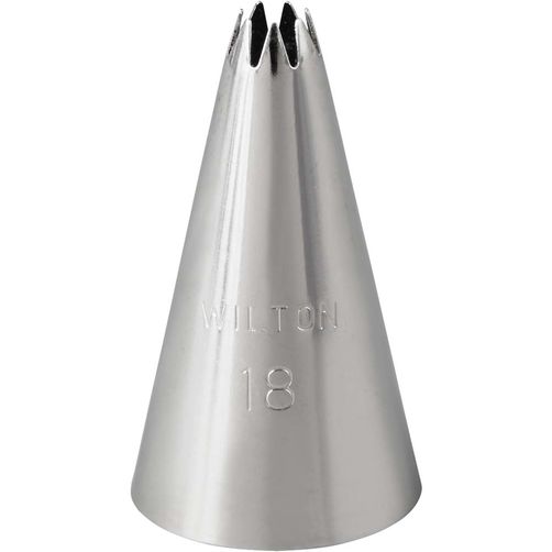 Dekorační špička je vyrobena z poniklované mosazi. Je vhodná pro zdobení dortů i rolád a dalších oblíbených moučníků. Jemně řezané zoubky vytvoří do detailu propracovaný vzorek. Vhodná pro přípravu cupcakes, muffinů. Určená pro větší spojky na zdobící sáček. Nasaďte koncovku na zdobící sáček naplněný krémem a stiskněte. Zdobítko je snadno omyvatelné, je lepší jej dokonale umýt v ruce. Otvory vyčistíte kartáčkem určeným přímo na špičky. Vhodná pro všechny typy plnících sáčků.