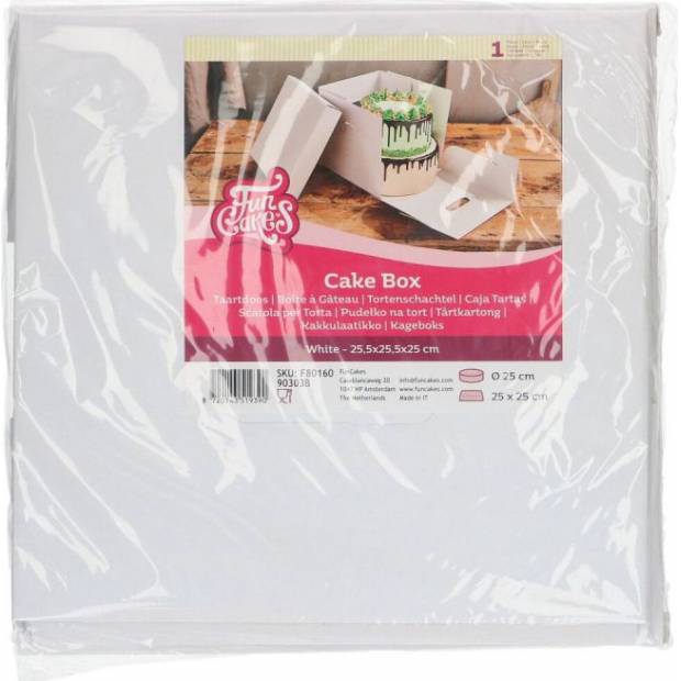 Tento pevný dortový box od FunCakes se snadno sestavuje a je ideální pro přepravu zdobených dortů. Víko (bez okénka) je dodáváno s krabicí. Tato krabice má držadla, takže můžete krabici na dorty snadno zvednout.