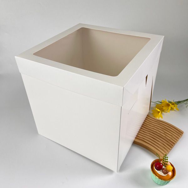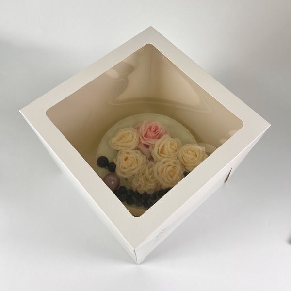 Vysoká dortová krabice 30 × 30 × 30 cm s průhledným okénkem bezpečně ochrání tvůj dort a zároveň ho nechá krásně vyniknout.