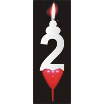 Dortová svíčka ve tvaru čísla DVA s plastovým zapichovátkem ve tvaru srdíčka.