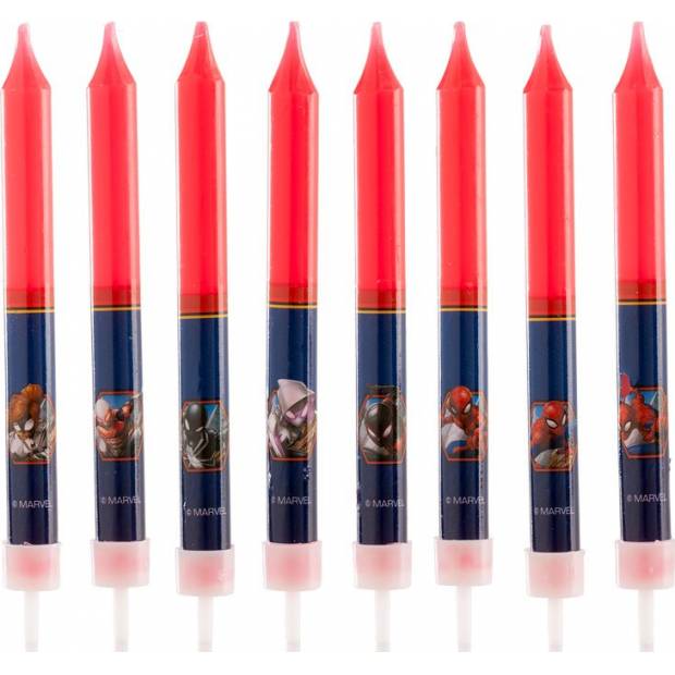 Dortové svíčky s obrázky hrdiny Spider Mana. Můžou být použity samostatně nebo v kombinaci s jinými svíčkami či světelnými fontánami. Umisťují se na hotový dort. Svíčka je nejedlá dekorace. V balení 8 ks svíček. Výška 9 cm.