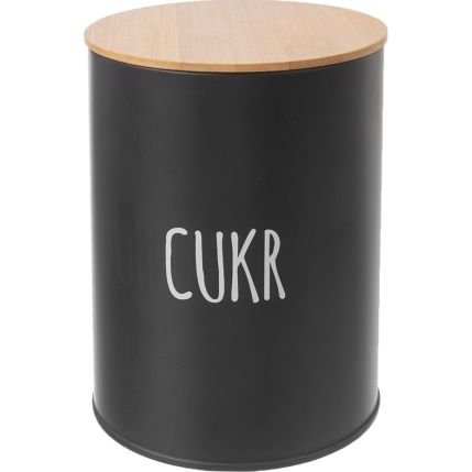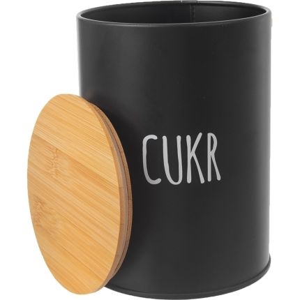 Bílý nápis CUKR okamžitě prozradí, jaký obsah plechovka ukrývá – ať už tedy doma máte moučkový, hnědý nebo kostkový druh tohoto sladidla, dóza bude skvělým místem k jeho uchování. Součástí je i víčko z bambusového dřeva, jehož silikonové těsnění zaručuje, že se cukr nevysype, kde nemá.