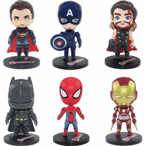 Figurky Marvel a DC Comics Superhrdinové 6 ks - Superman, Captain America, Thor, Iron Man, Spider-Man a Batman Cakesicq