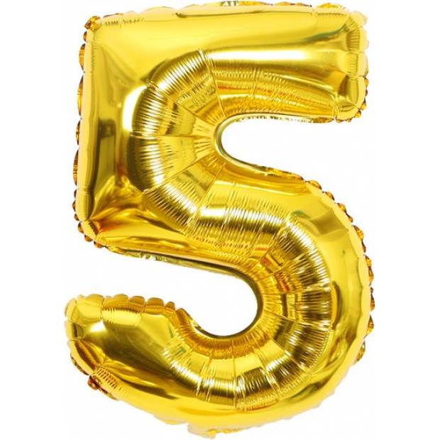 Fóliový balónek číslo 5, zlatý, 102 cm.