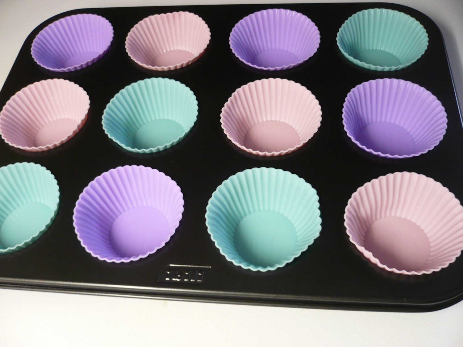 Forma s kvalitním povrchem z teflonu a silikonové košíčky pro opakované použití na pečení muffinů