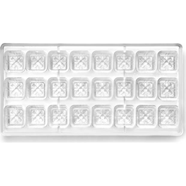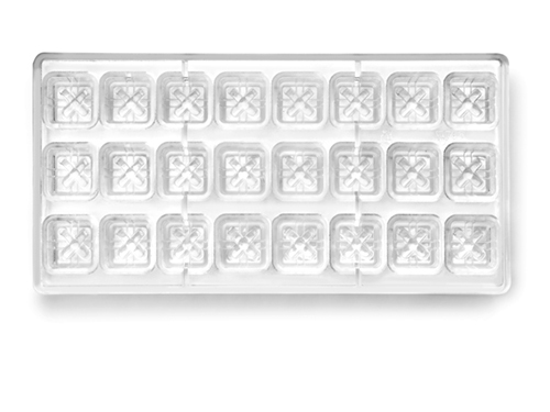 Čokoládové bonbony ve tvaru malých kvádrů mohou mít podobu dárečků s mašlí na vrchu. Během jednoho plnění můžete vyrobit 24 kousků o rozměrech 2,5x2,5 cm. Formu je nutné mýt ručně. Výroba je velmi jednoduchá – formu naplníte tmavou nebo bílou čokoládou a dáte do chladničky. Po ztuhnutí bonbony vyjmete.