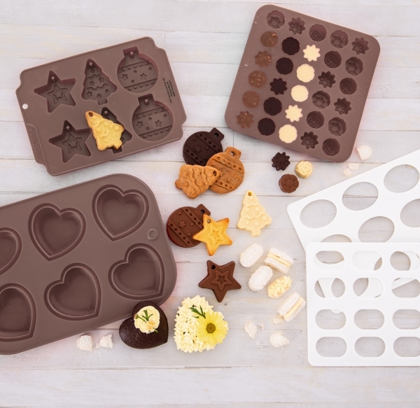 Stačí rozpuštěnou čokoládu nalít, přidat vaše oblíbené ingredience, ořechy, sušené ovoce, sušenou levanduli apod. a nechat ztuhnout v ledničce. Pak je z pružné formy jednoduše vyloupnete. Nebo ji použijte na pečení drobných máslových sušenek ke kávě.