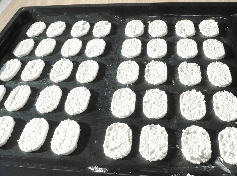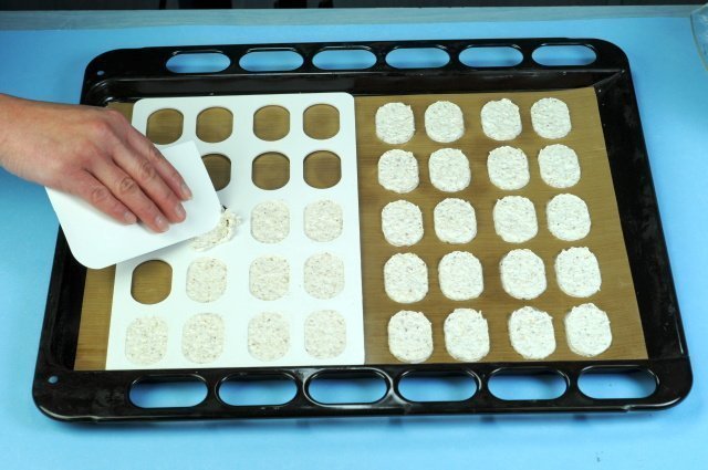 Šablonu na laskonky položte na plech vyložený pečícím papírem. Stěrkou po ní rozetřete hmotu na laskonky a šablonu opatrně odloupněte. Připravíte tak 20 stejně velkých laskonek. Rozměry šablony: 17,5 x 30 cm. Rozměr jedné laskonky: 4,9 x 3,1cmNechali jsme pro vás otestovat foodblogerem:Forma na laskonky je vyrobena z pevného plastu a je určena na 20 ks malých oválných kousků z bílkového sněhu, cukru a buď kokosu nebo jemně mletých ořechů nebo oříšků. U produktu je přiložen recept s podrobným postupem. Dle tohoto receptu se dá připravit cca 70 ks už slepených laskonek. Na plech položíme teflonovou fólii nebo papír na pečení, výrobce doporučuje ještě mírné potření tukem, ale myslím, že to nebude zapotřebí. Na jednu polovinu plechu položíme šablonu hladkou stranou nahoru a do oválků naneseme bílkovou hmotu. Povrch zarovnáme cukrářskou kartou a přebytečnou hmotu setřeme. Pak z jedné strany opatrně a pomalu šablonu nadzvedáváme, laskonky postupně odpadávají a zůstávají na plechu. Pak totéž zopakujeme na druhé straně plechu. Laskonky ze začátku pečeme 15 minut při 120°C a následně je dosušíme při teplotě 80°C při pootevřených dvířkách trouby. Zchladlé laskonky slepíme např. karamelovým nebo jiným krémem a můžeme je ještě dozdobit čokoládou. Se šablonou se pracuje naprosto skvěle a jednoduše. Výsledkem jsou laskonky stejné velikosti i tvaru, takže tato šablona Vás opravdu nezklame. V nabídce jsou i v jiných velikostech a v kulatém tvaru., tak má každý na výběr. M.F.