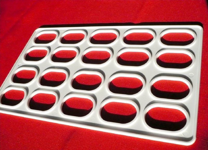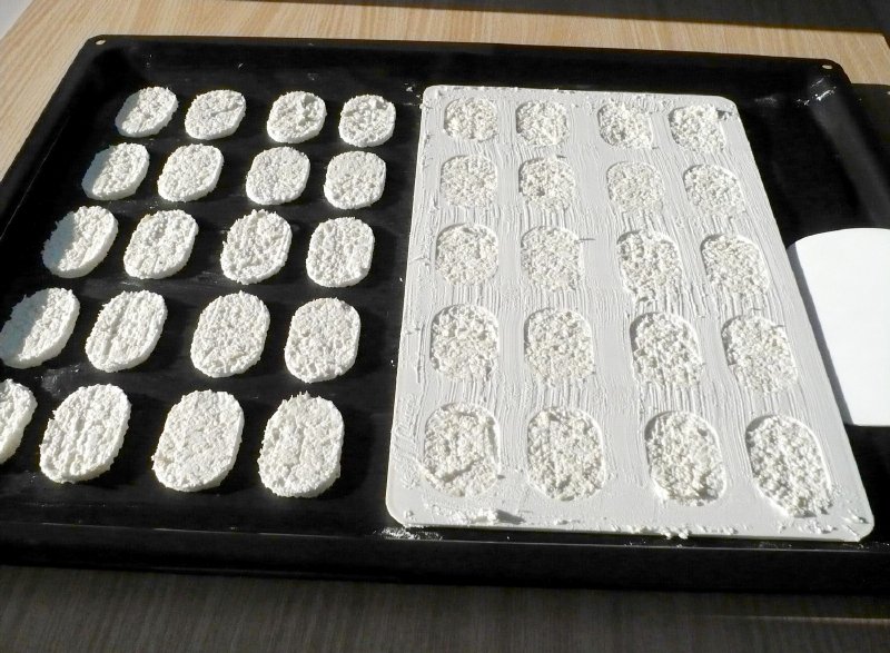 Plastová šablona na přípravu dvaceti laskonek o délce 30 cm.