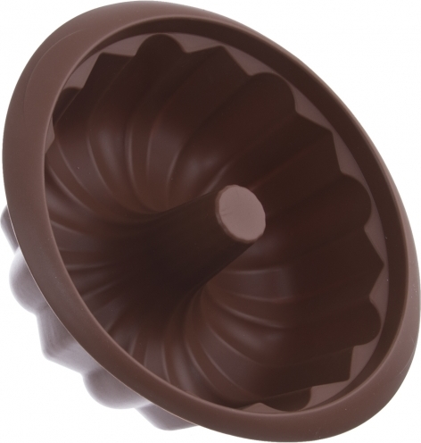 Forma na bábovku s praktickými úchyty. Hnědá. Materiál: silikon - forma je lehká, skladná, nepřilnavá, těsto se v ní nepřipéká, nepohlcuje pachy z potravin, je odolná teplotám od -40 °C do +220 °C. Snadno se umývá, lze ji umývat v myčce na nádobí. Rozměry: pr. 26 cm, v.9,5 cm.