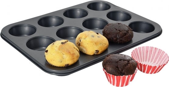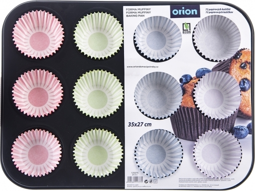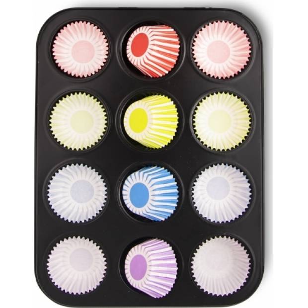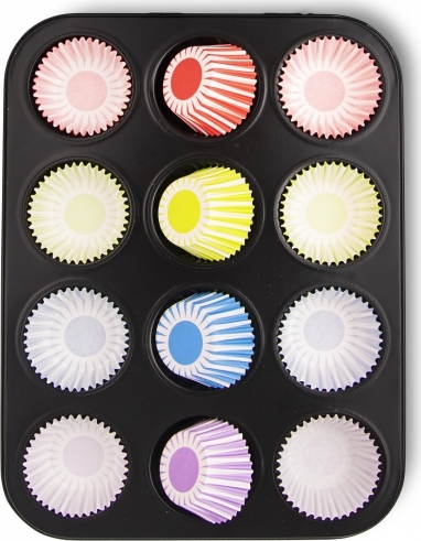Praktickou formu s nepřilnavým povrchem můžete použít buď přímo, nebo s vloženými košíčky z pečicího papíru, v nichž muffiny, cupcaky, sladké a slané tartaletky budete rovnou servírovat.