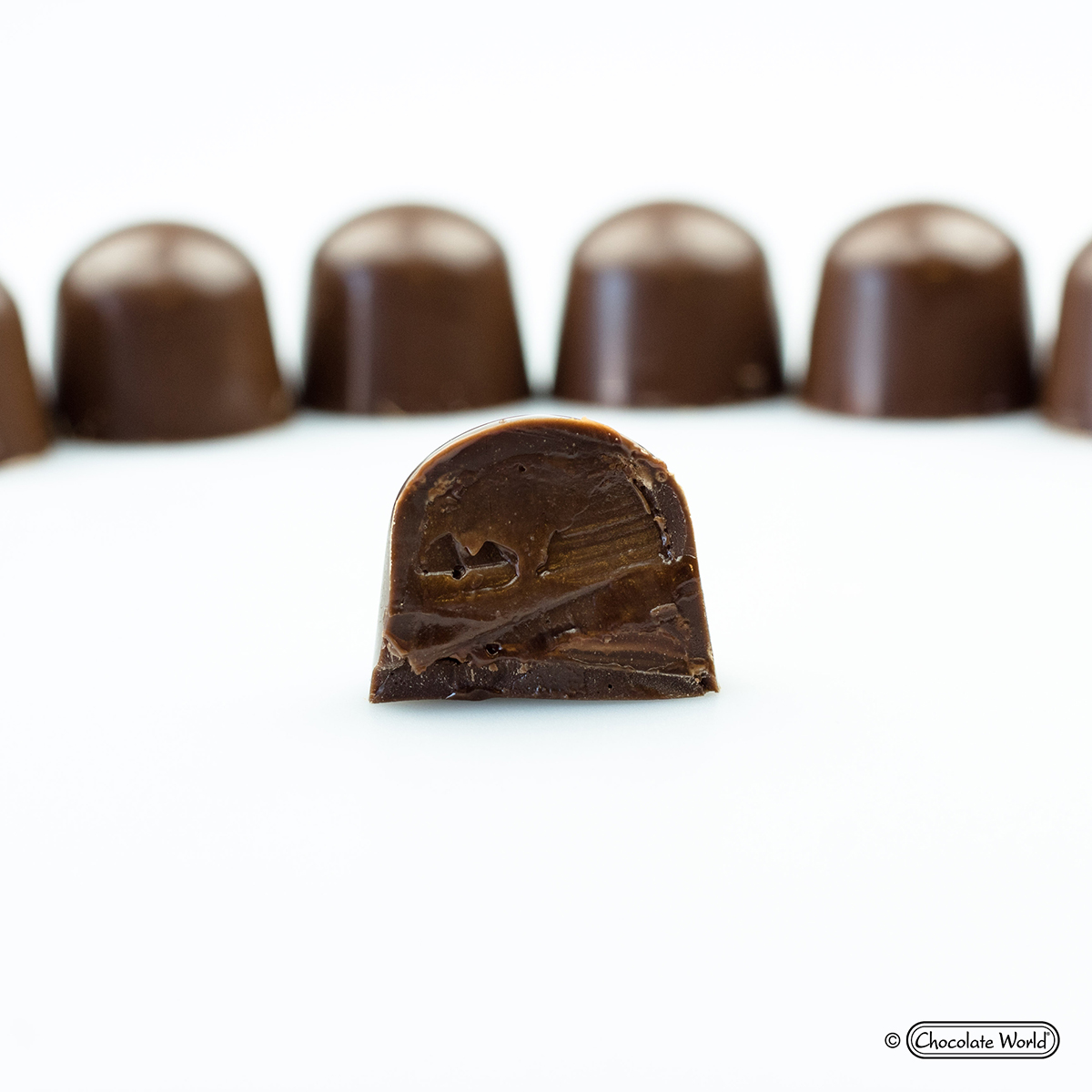 Polykarbonátové formy Chocolate World jsou používány profesionálními čokoládovnami po celém světě. Chocolate World je světovým lídrem na trhu polykarbonátových forem na čokoládu pro profesionální čokoládovny a nabízí největší standardní sortiment forem na světě. Každá forma je vyrobena v Belgii za použití vysoce leštěných nástrojů podle výrobních norem certifikovaných ISO a lidské kontroly kvality. Polykarbonátová forma umožní vyrobit dokonalou čokoládu. Tato vysoce kvalitní evropská forma se snadno používá, vaše čokoláda bude mít lesklý a lesklý povrch a bude se snadno vyjímat. Chcete-li získat barevné čokoládové kousky, natřete si formu tenkou vrstvou barevného kakaového másla, než formu naplníte čokoládou. Design této formy umožní vytvarovat dokonalé tvary s hladce opracovanými liniemi.
