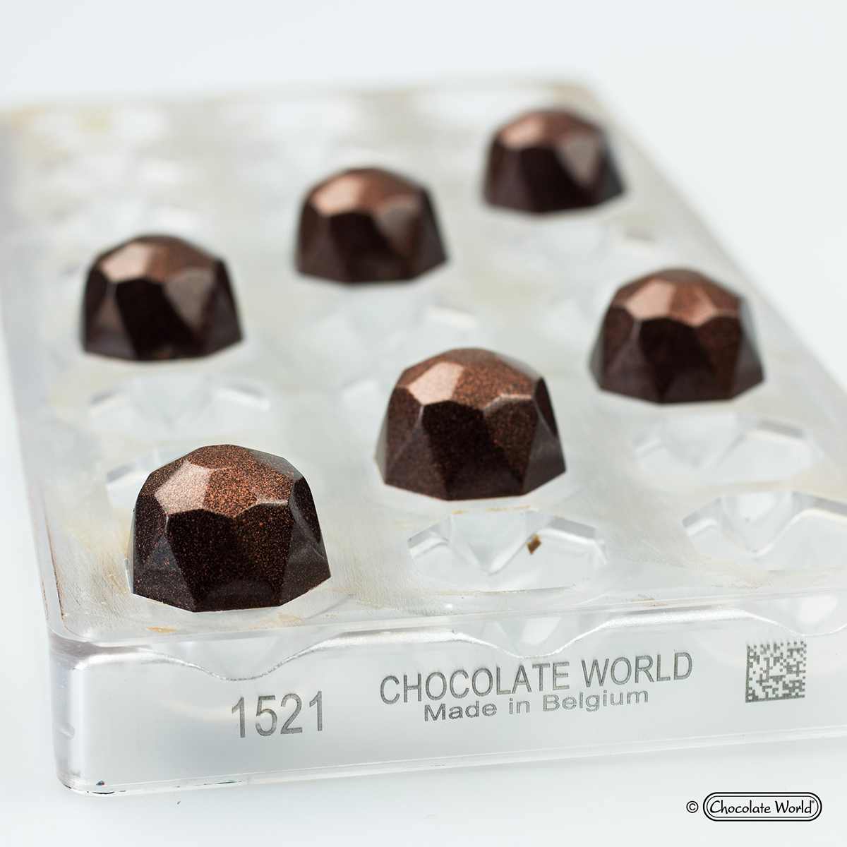 Polykarbonátové formy Chocolate World jsou používány profesionálními čokoládovnami po celém světě. Všechny obrázky a loga jsou používány na základě licence od Chocolate World.Každá forma je vyrobena v Belgii za použití vysoce leštěných nástrojů podle výrobních norem certifikovaných ISO a lidské kontroly kvality. Forma je vyrobena z odolného polykarbonátu, který usnadní vyjmutí hotové pralinky. Velice dobře se s ní pracuje.