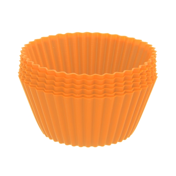 Díky kvalitním oranžovým silikonovým formám bude pečení snadnější. Lze je použít i na přípravu ovocných košíčků, suflé nebo osvěžujícího sorbetu. Formy jsou vyrobené z odolného, žáruvzdorného silikonu, určeného pro styk s potravinami.