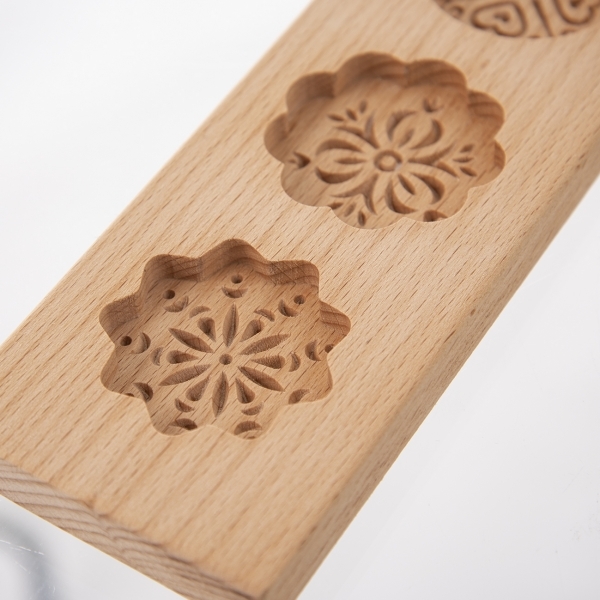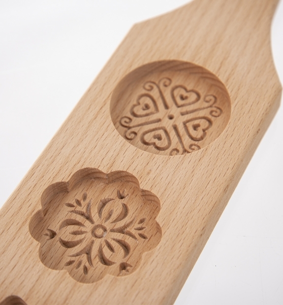 Může být nejen funkčním pomocníkem, ale také hezkou dekorací nejen v rustikální domácnosti nebo na chalupě. Typ formy navazuje na tradiční, staročeské, ručně vyřezávané formy na perníky.