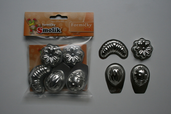Formičky mají průměr 3,5 – 5,5 cm. Jsou vyrobené ze zdravotně nezávadného pocínovaného plechu, ze kterého cukroví vždy dobře vyklopíte. Sada obsahuje dvacet formiček – každý ze čtyř tvarů po pěti kusech.
