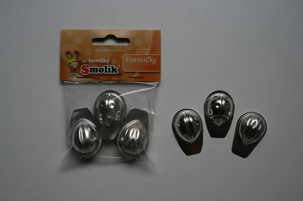 Formičky mají rozměry 4,2 x 5 cm. Jsou vyrobené ze zdravotně nezávadného pocínovaného plechu, ze kterého cukroví vždy dobře vyklopíte. Sada obsahuje patnáct formiček – každý ze tří tvarů po pěti kusech.