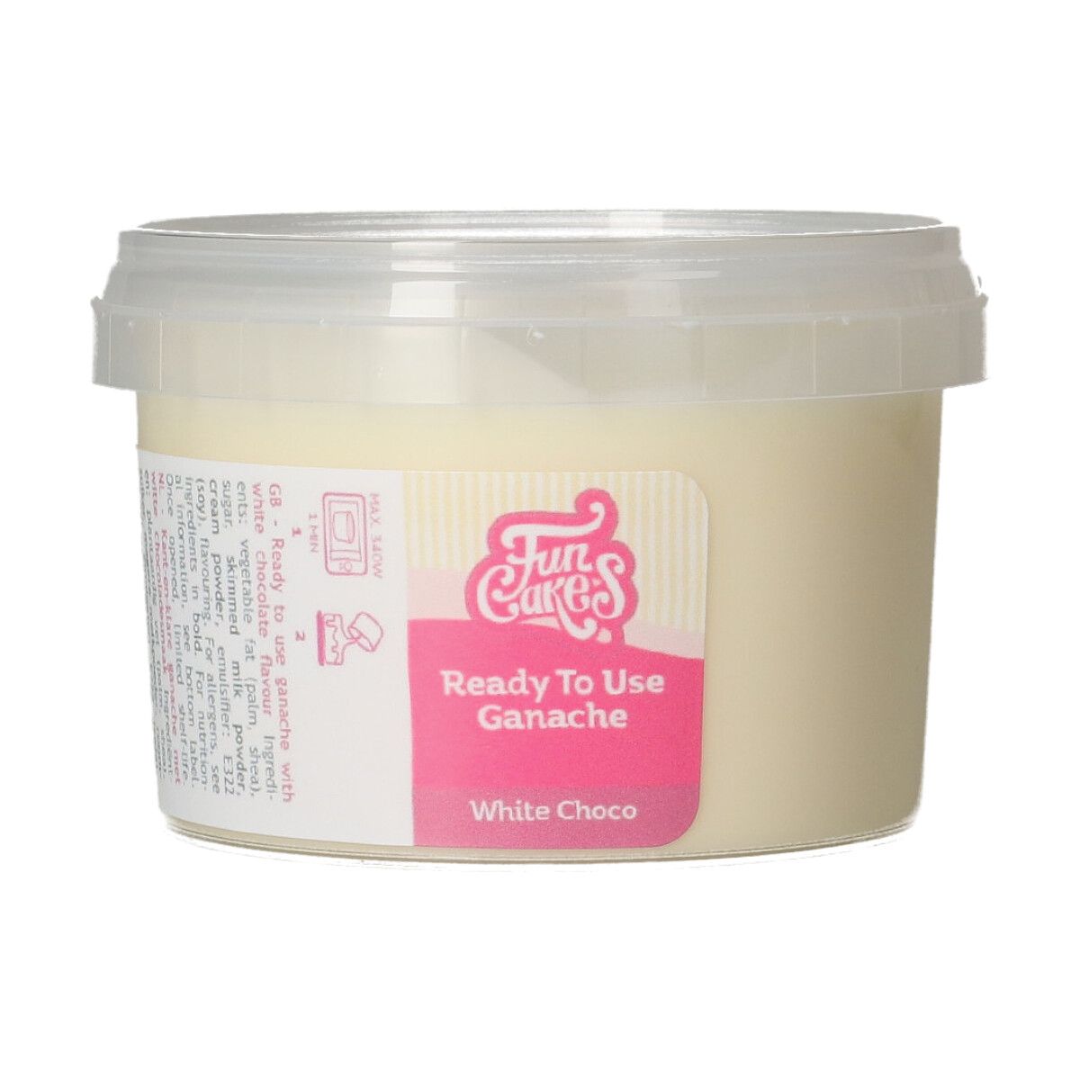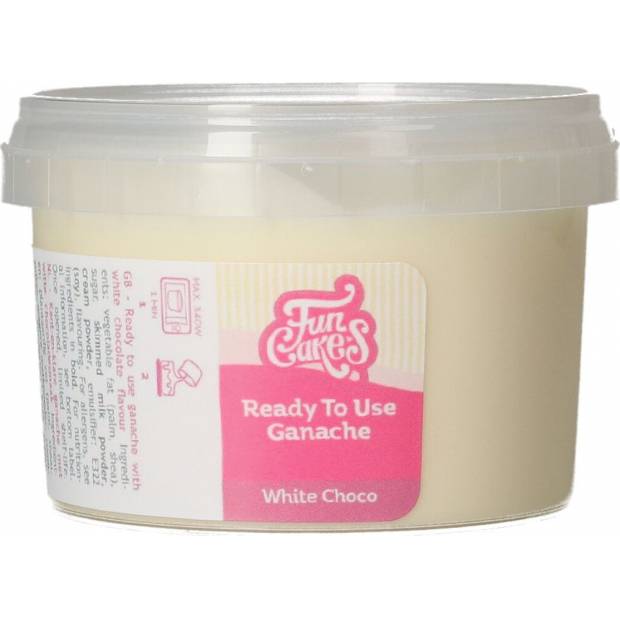 FunCakes Ready To Use Ganache má příchuť bílé čokolády. Lze s její pomocí ozdobit dort, naplnit dort a použít jako podklad na ozdobu polevou. Skvělá je také jako čokoládová náplň, příchuť do zmrzliny nebo bavoráku. Snadné použití. Ganache v lednici ztuhne. K zakrytí dortu a plnění (2 vrstvy) 20 cm dortu nebo zakrytí a plnění (1 vrstva) 25 cm dortu. Vystačí na 20-25 kroužků na košíčku. Příprava: Na čokoládovou náplň: rozmixujte výrobek mixérem, aby byla ganache lehká, vzdušná a vhodná na lemování. Pro zakrytí a lemování: zahřejte produkt v mikrovlnné troubě po dobu 1 minuty při 340 W nebo v teplé vodě, abyste získali správnou konzistenci. Na máslový krém nebo jemnou čokoládovou/dortovou náplň: míchejte 150 g změklého másla s výrobkem po dobu 5 minut při vysoké rychlosti. Obsah: 260 gramů.