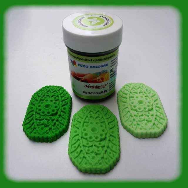 S touto gelovou barvou dosáhnete pistáciově zeleného odstínu. Je vhodná na barvení potahovací hmoty, marcipanove figurky a další. Balení obsahuje 35 g gelové barvy, která je již koncentrovaná a je ji tedy možné použít na barvení hned. Gelové barvy nejsou vhodné pro přímou konzumaci.