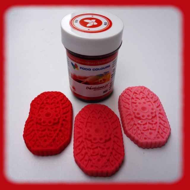 Červená gelová barva vám přijde vhod při přípravě ozdob, potahovacích hmot nebo polev a krémů. Stačí přidat kapku této jasně červené gelové barvy, která je vysoce koncentrovaná a výsledek se dostaví okamžitě. 35 g.