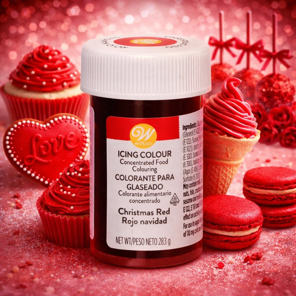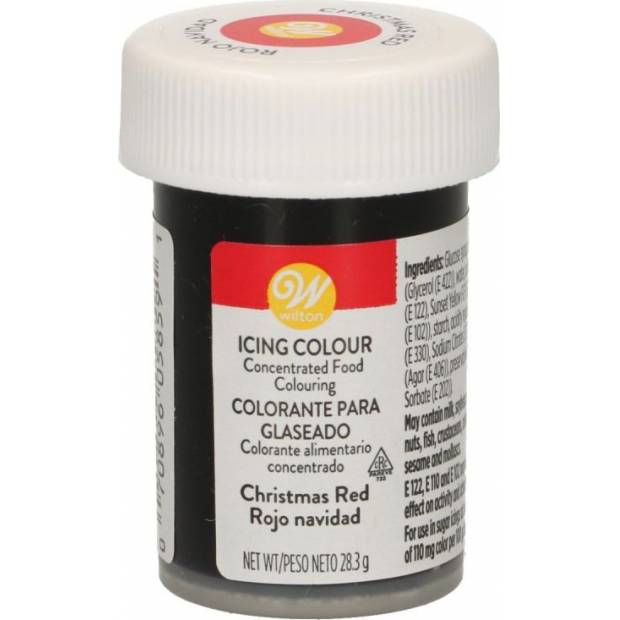 Gelová barva Wilton v barvě Vánoční červená. Ideální gelová barva pro obarvení potahovacích hmot, těst a krémů...