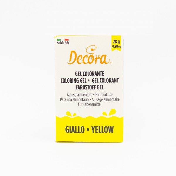 Žlutá gelová barva v kelímku, pro barvení jedlých výrobků. Tato gelová barva je balena v kelímku o hmotnosti 28g, navíc je zabalena v papírové krabičce, barva je tedy chráněna před světlem a nemění tak svoje vlastnosti. Tuto gelovou barvu můžete použít na obarvení cukrové hmoty - Marcipánu, krémů, těst, ale třeba i želatin a Isomaltu. Vždy přidejte několik kapek gelu ( stačí na párátko ) a míchejte, dokud nedosáhnete požadované barvy.
