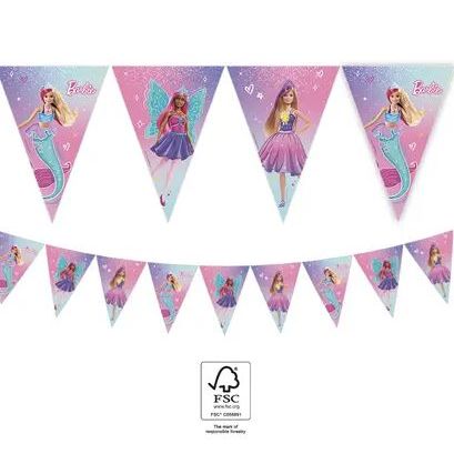 Girlanda z vlajek, Barbie, délka 230 cm, skládající se z 9 různobarevných vlajek, oboustranně identicky potištěné, rozměry vlaječky cca. Rozměr 27*18 cm. Výrobce Procos Řecko. Upozornění: Výrobek je určen k dekoraci, nejedná se o hračku. Nedoporučuje se pro děti do 3 let. Uchovávejte mimo dosah ohně a jakéhokoli zdroje tepla.