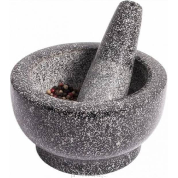 Hmoždíř je vyroben ze žuly neboli granitu. Pro lepší funkčnost je hmoždíř vevnitř zdrsněn a tím se s ním lépe pracuje. Celkový objem je 250 ml. Vzhledem k materiálu, z kterého je vyroben, je těžší, což je ale jeho předností. Na podložce neklouže a dobře se drží. Taktéž se velice dobře udržuje. I když vlastníme různé elektrické kuchyňské přístroje jako mlýnky, sekáčky a mixéry, tak hmoždíř by měl mít stálé místo v každé kuchyni. Naprosto skvěle uvolní a rozvine vůni drceného koření a třených bylinek. Koření nadrtí na kousky nebo na jemný prášek, dle naší potřeby. Chuť jídla je pak o poznání lepší, má intenzívnější aroma. Nejčastěji drceným kořením bude asi celý pepř, ale můžeme rozdrtit jakékoliv koření. Například kmín, koriandr a fenykl na domácí chléb. Stačí třeba jen trochu rozrušit povrch a ucítíte tu nádhernou a intenzívní vůni, která se rozvine po celé kuchyni. Hmoždíř přijde vhod i při přípravě perníkového koření, rozdrtí hořčičné semínko atp. Můžete si taktéž namíchat různé směsi koření, k různým účelům podle své potřeby. Využijeme ho i na rozetření česneku, bylinek při výrobě různých marinád, pesta, dresinků a bylinkového másla. Já jsem s tímto hmoždířem velmi spokojená a věřím, že nikoho nezklame. M.F.
