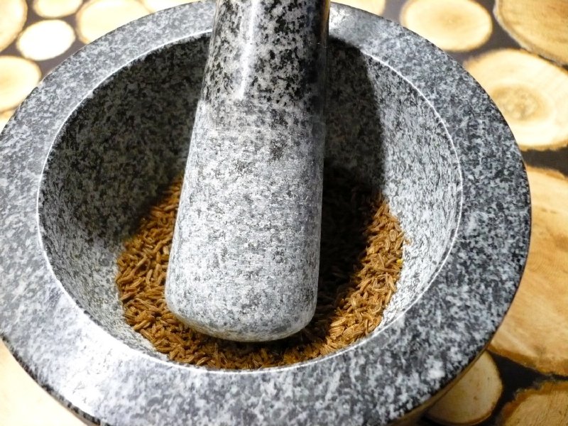 Při přípravě, nakládání masa na pečení a grilování je potřeba nadrtit koření .