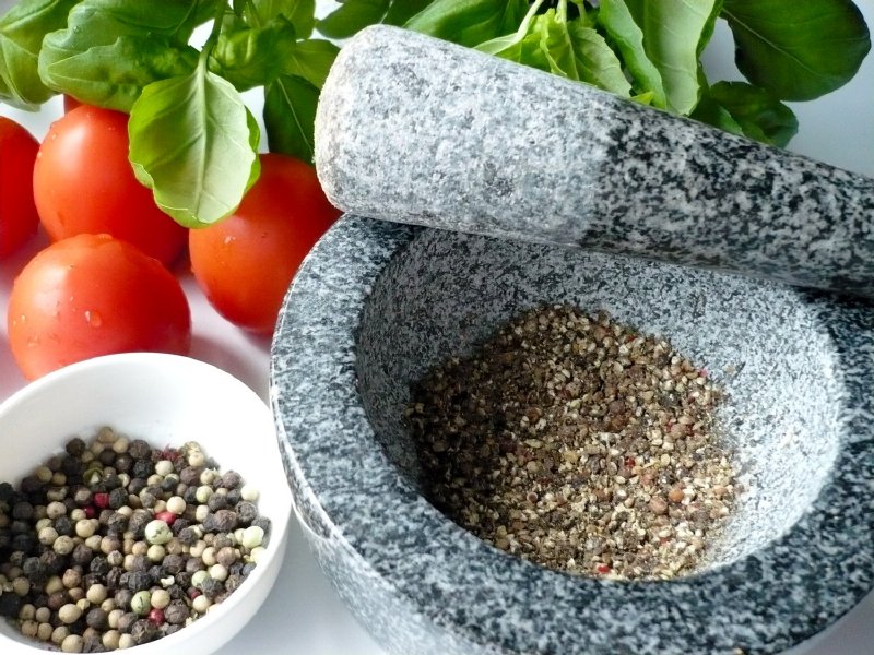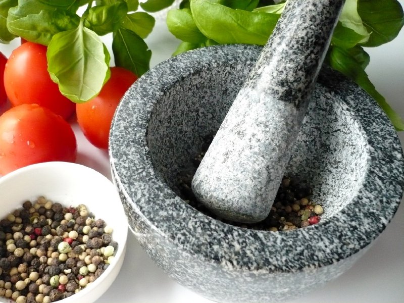 Masivní porcelánový hmoždíř na drcení koření, které bude mít kromě výrazné vůně i intenzivnější chuť,
