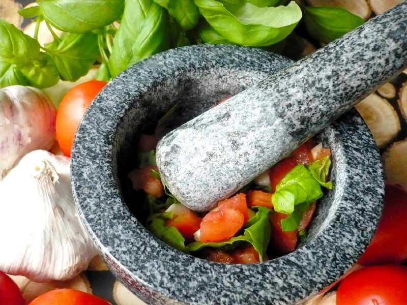 Jednoduše vyhlížející hmoždíř, který upotřebíte při drcení a zpracování jakýchkoliv ingrediencí a byl