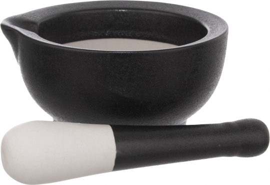 Vnitřní část hmoždíře a spodní strana zakulaceného tloučku není glazovaná, dojde tak k efektivnějšímu drcení.