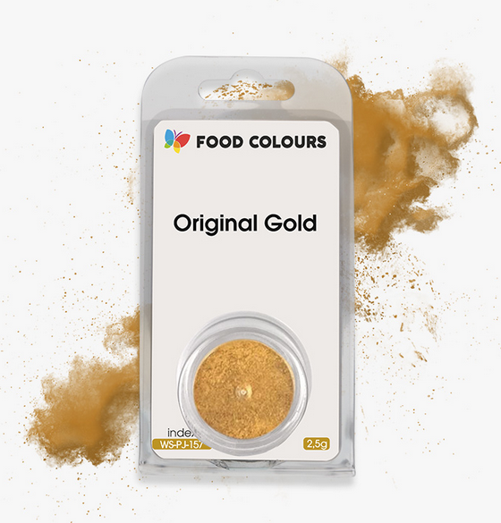 Jedlá prachová perleťová barva Original gold od Food Colours. Balení 2,5 g.