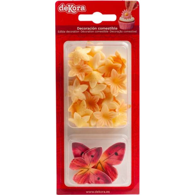Posuňte své dorty a koláčky na vyšší úroveň s těmito ozdobami z oplatek s růžovými květy a růžovými motýly. S těmito dekoracemi se každé pečení stane párty, na kterou vaši hosté nezapomenou. Jak skladovat: Uchovejte v chladu a suchu. Nevystavujte přímému slunečnímu záření. Uchovávejte mimo dosah dětí. Obsah: 35 květů a 4 motýli.