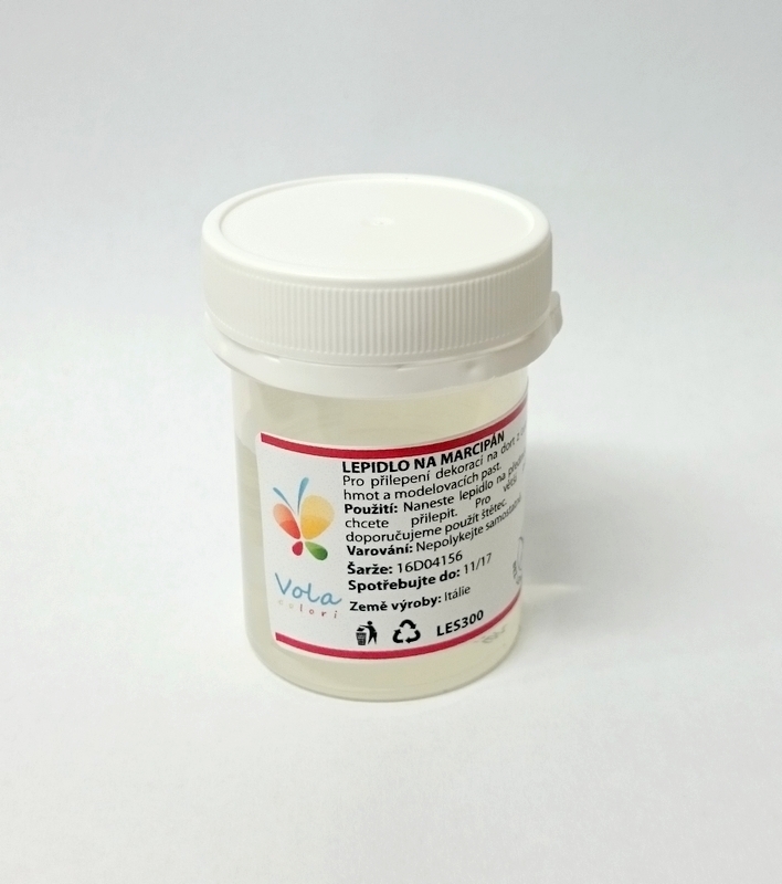 Jedlé lepidlo převážně na lepení marcipánu. Lepidlo stačí nanést štětečkem na místo, které chcete přilepit. S tímto lepidlem bude držet každá dekorace na Vašem dortu. Složení: voda; emulgátor E466, regulátor kyselosti E330, konzervant E202. Obsah balení 25g.