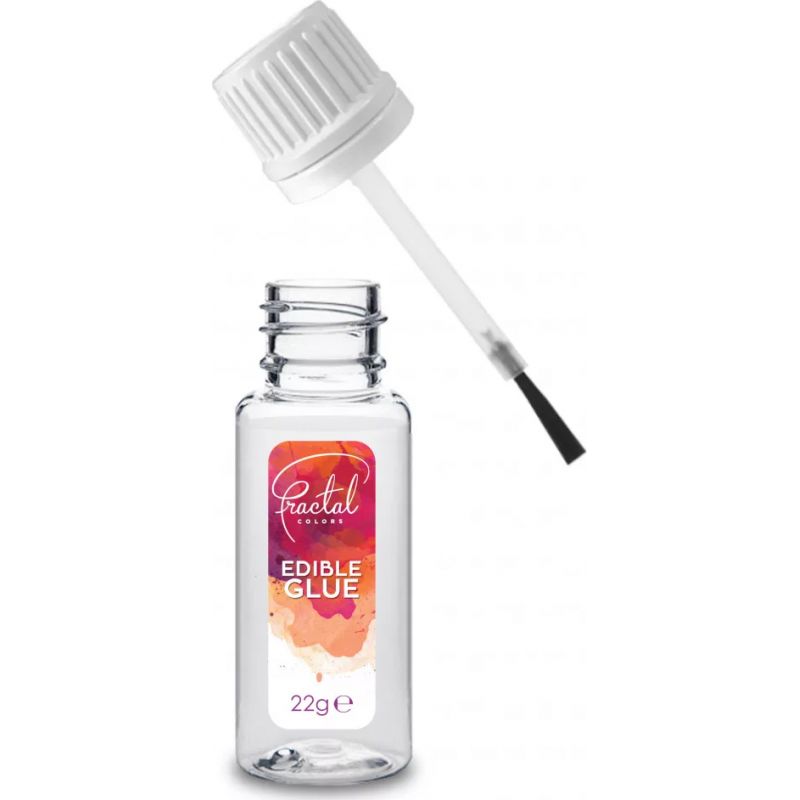Jedlé lepidlo slouží k přichycení ozdobných částí k dortu. Naneste tenkou vrstvu lepidla za pomocí štětečku ( aplikátoru, která je součástí balení - štěteček je připevněný k víčku ). Přiložte ozdobu na dort potažený potahovou hmotou a chvilku držte. Lepidlo zajistí, aby ozdoby na dortu drželi na svém místě. Lepidla neslouží k přichycení jedlých papírů, k takovému účelu používejte vždy vhodné gely. Hmotnost 22 g.