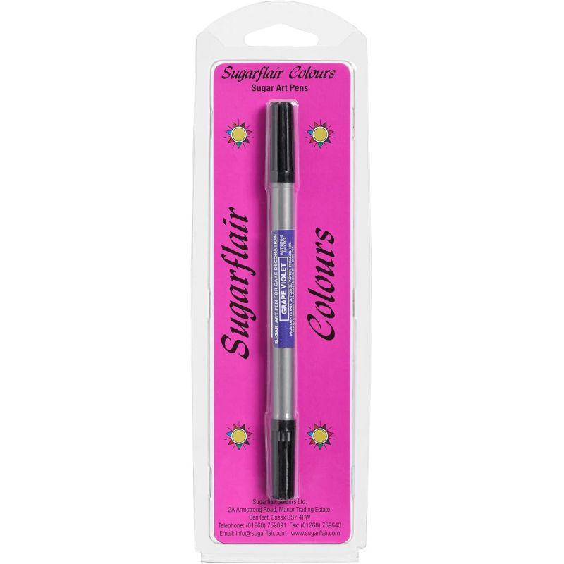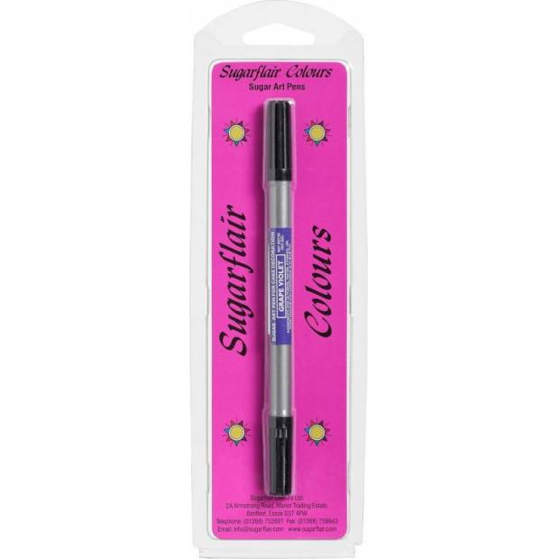 Sugarflair Sugar Art Pen je pero, které obsahuje jedlý inkoust a je skvělé pro psaní přímo na fondán, marcipán nebo sušenou královskou polevu. Pero je ideální pro kreslení očí, textů, balónkových provázků a mnoha dalších věcí.Pera nefungují na čokoládu nebo výrobky s mastným/lesklým povrchem jsou ideální pro psaní na polevu a přidávání jemných detailů do vašich projektů. Všechny potravinářské fixy jsou bez ořechů, bez lepku, bez GMO a bez tuku.