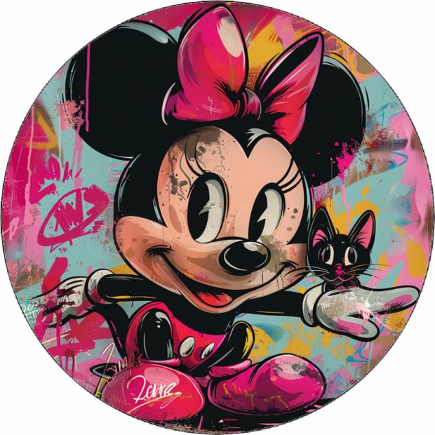 Jedlý papír Minnie a kočky růžové pozadí 19,5 cm