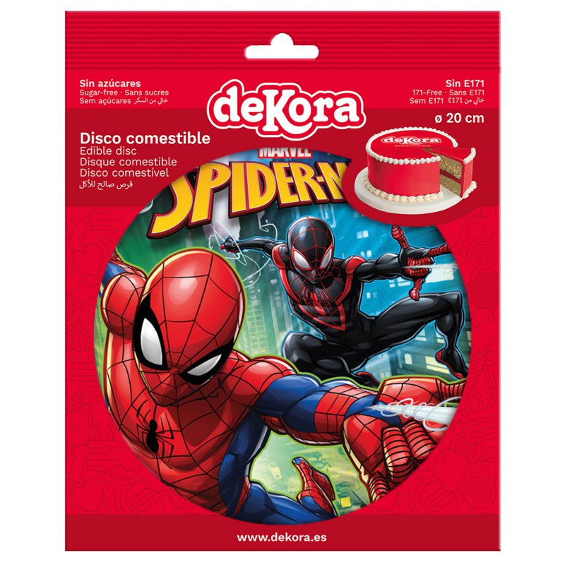Pevná, kulatá jedlá oplatka na dort s oblíbeným motivem Spiderman. Potisk na oplatce byl proveden pomocí certifikovaných jedlých potravinářských inkoustů. Výtisk byl proveden na specializované tiskárně. Barva oplatky se může mírně lišit od grafického designu (barva oplatky je při aplikaci na hmotu intenzivnější). Průměr oplatky: 20 cm. použití: Pečivo rovnoměrně zakryjte šlehačkou nebo smetanou, oplatku položte na hmotu a jemně ji přitlačte k povrchu. Jedlý papír nemusí zpočátku dokonale přilnout, ale asi po 1 hodině se přizpůsobí hmotnosti. Oplatka by měla být na dort položena nejdříve 2 hodiny před podáváním. Chcete -li dát čokoládu, marcipán nebo plast, potřete jeho spodní část neutrálním gelem. Vypadá to velmi hezky, když je gel také na oplatce. Dekorace není vhodná pro želé.