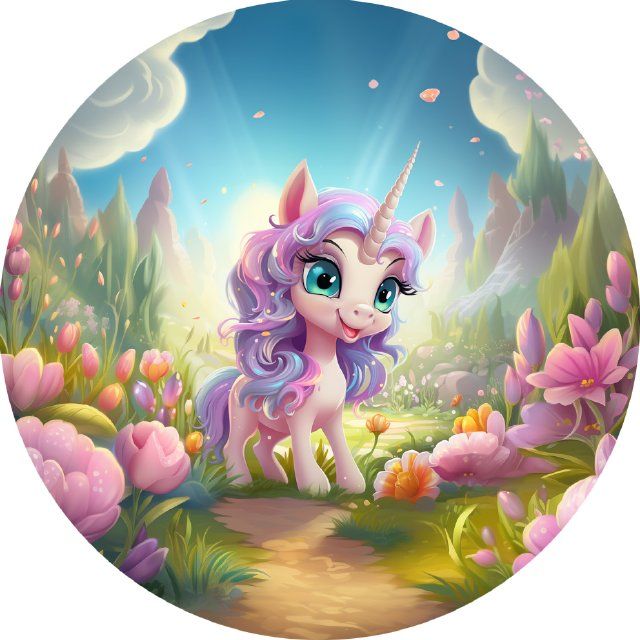 Jedlý papír Unicorn v rozkvetlé zahradě